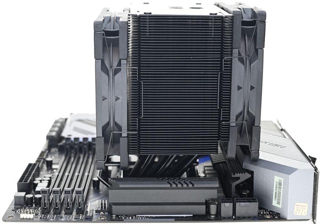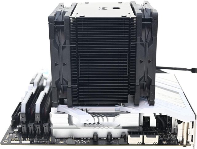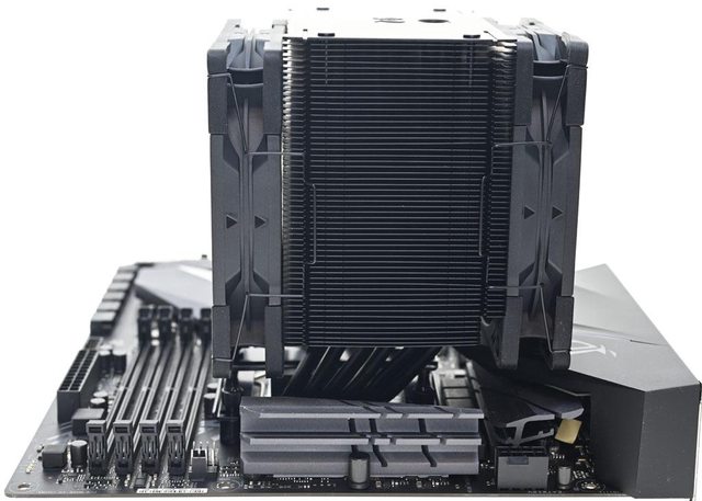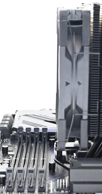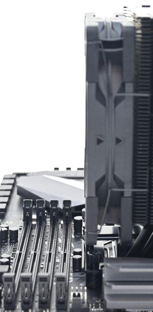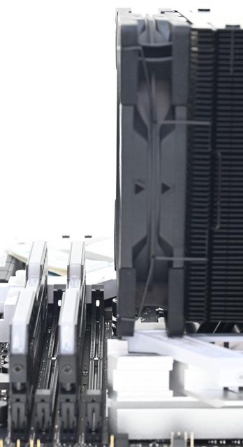 ●散熱器採向後向上偏置設計,可避免干涉主機板VRM散熱片與記憶體插槽,提高安裝相
