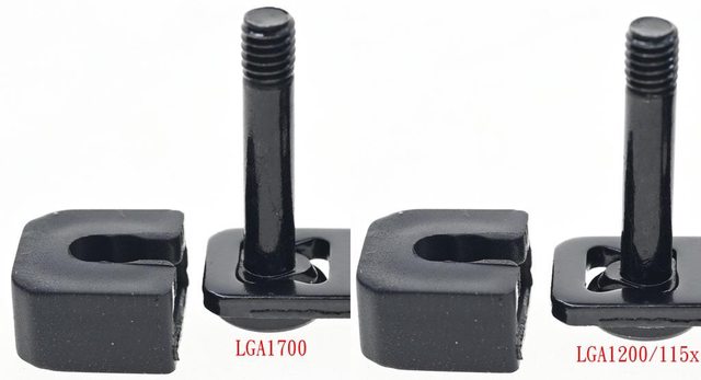 的平邊朝沙漏狀開孔外側裝(左),為對應LGA1700平台使用;將固定柱三角形凸面的平邊