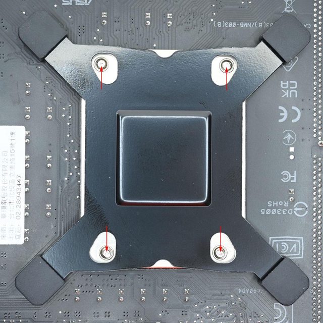 開孔處對準處理器扣具底板4個螺絲鎖點位置(紅色箭頭)