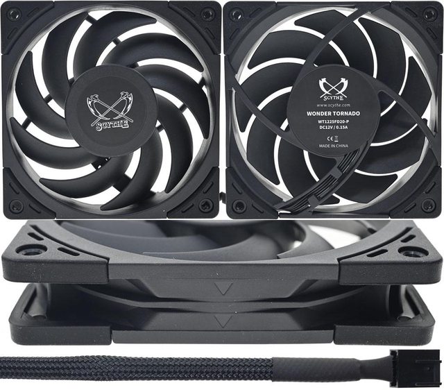▼2個新款"狂風丸"Wonder Tornado 120mm PWM風扇,型號為WT1225FD20-P,使用高精度