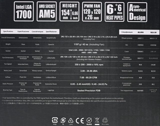 ▼此面外盒有散熱器/風扇詳細尺寸圖及外觀照片