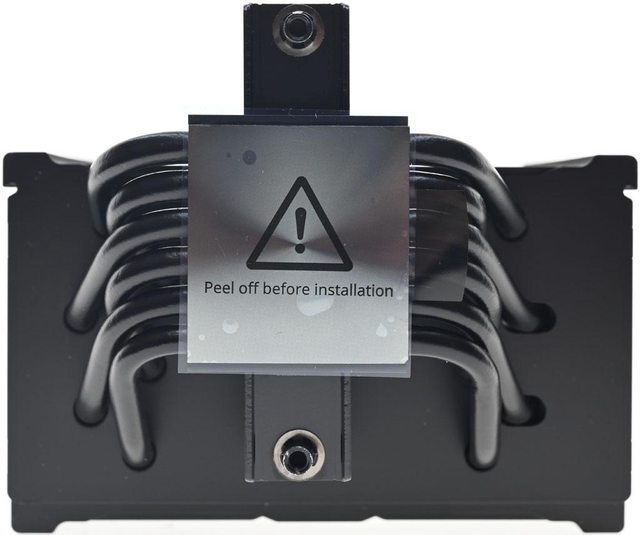 ▼散熱器底座的處理器接觸面有保護貼,上面用英文標示"安裝前撕除"