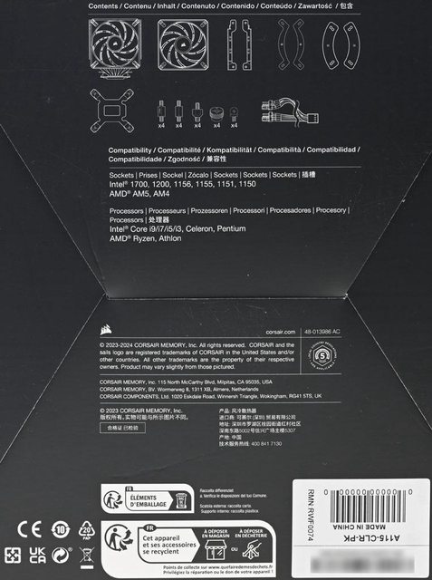 2.0扣具支援Intel LGA1700/1200/115x及AMD AM5/AM4平台,配置2個採用CORSAIR