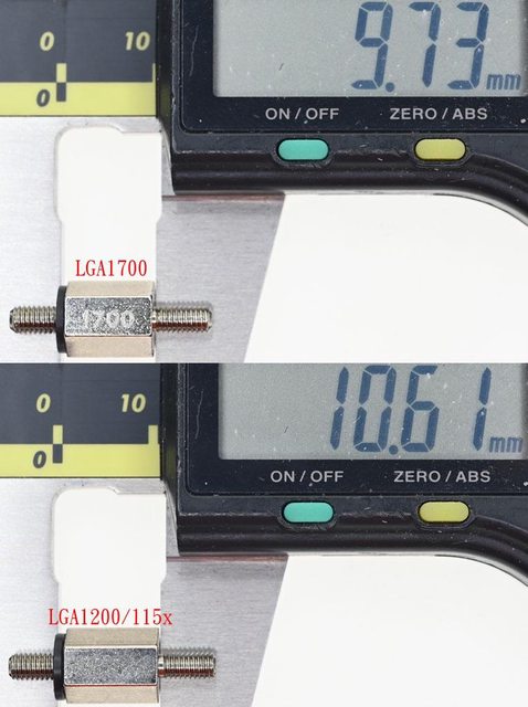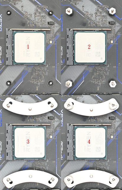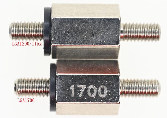 ▼AMD螺柱其中一端螺牙長度較短,安裝時短螺牙那一端朝向主機板
