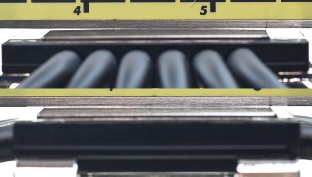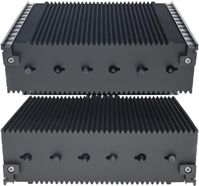 ▼從側面看,前塔及後塔最下方的3片散熱鰭片較小,壓板兩邊設置彈簧螺帽,用來鎖在