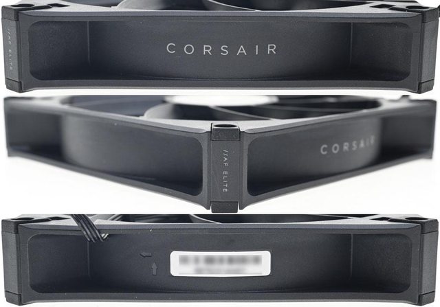 ▼風扇外框側面有CORSAIR字樣及條碼,其中一個外框角落有//AF ELITE字樣
