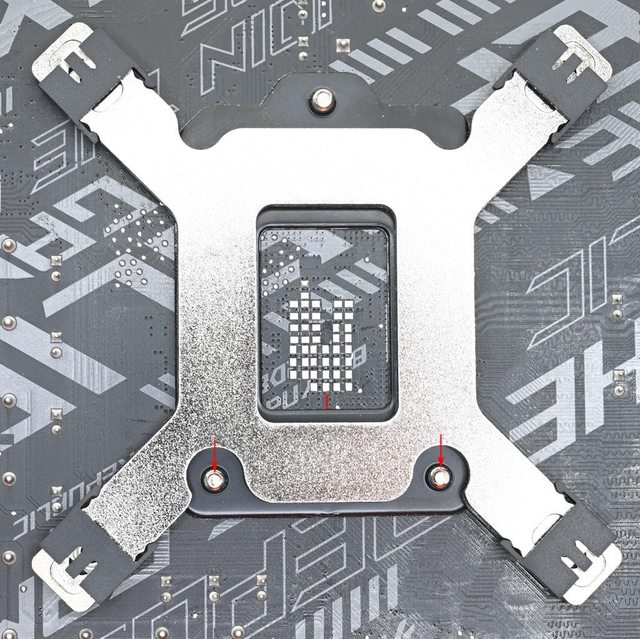準處理器扣具底板2個螺絲鎖點位置(紅色箭頭)