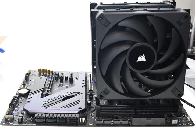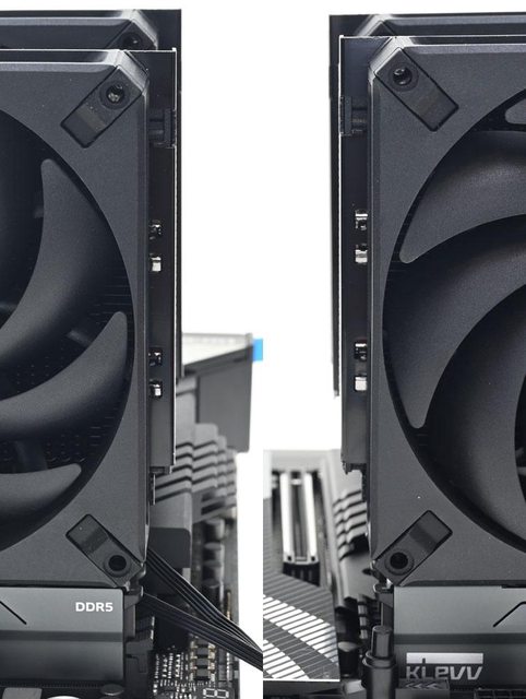 ▼因前塔風扇覆蓋在記憶體插槽上方,記憶體高度會影響前塔風扇凸出散熱器頂部的高度
