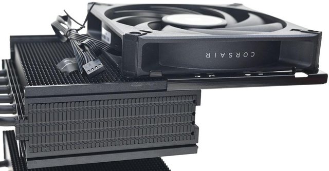 CORSAIR A115散熱器採雙塔設計,6支直徑6mm熱導管搭配45層高密度鰭片,熱導管與鰭片