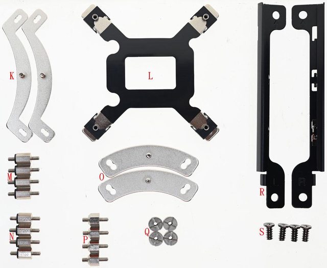 LGA1700螺柱(N)、AMD托架(O)、AMD螺柱(P)、托架固定手轉螺帽(Q)、風扇固定架(R)、風