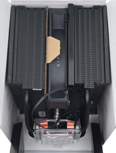▼打開中間最大的紙盒,散熱器與其中1個風扇之間加上運輸緩衝紙板