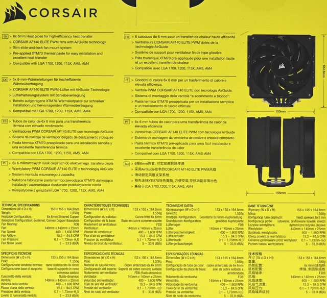▼此面外盒有商標、多國語言產品特色說明、散熱器尺寸、多國語言規格表