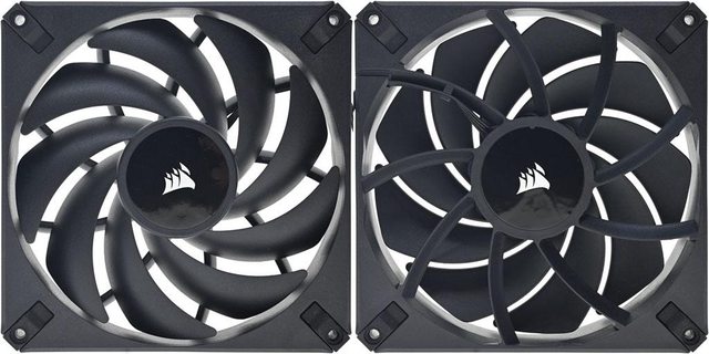 ▼AF140 ELITE風扇,9葉片鐮刀狀扇葉軸心有商標貼紙,採用CORSAIR AirGuide氣流引導