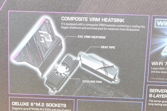 VRM散熱片採用熱管連接,在IO底配置主動散熱小風扇