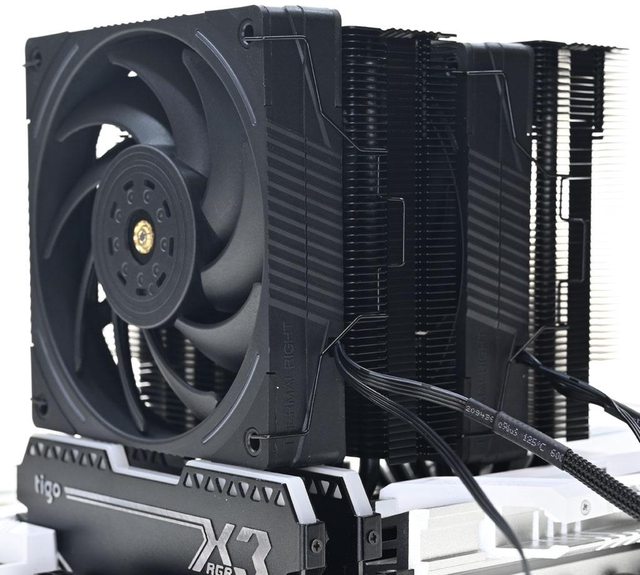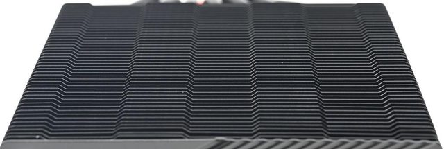 用焊接方式組合,搭配55層高密度鰭片,熱導管與鰭片均採黑化處理,頂部配置黑色裝飾