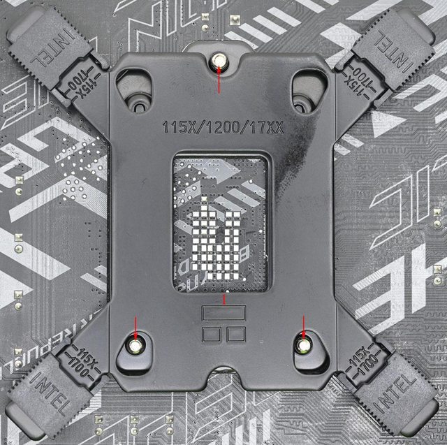 ▼安裝於Intel LGA1700/1200/115x平台時需使用Intel背板,金屬製背板四個角有可調整