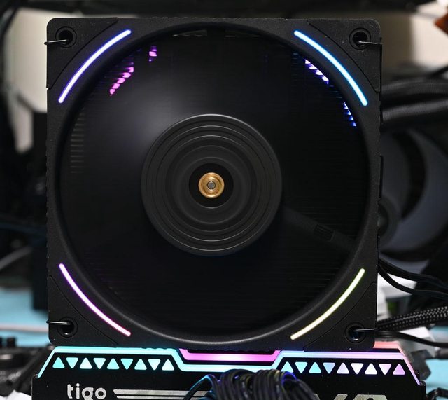 力,風扇外框具備4條RGB LED發光條,可透過3pin ARGB與主機板連動控制