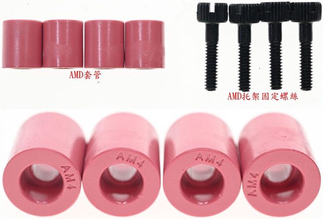 ▼安裝於AMD AM5/AM4平台時,需使用紅色AMD套管及AMD托架固定螺絲,套管其中一邊開