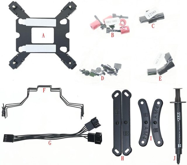 (H)、AMD托架(I)、TF7散熱膏(J)