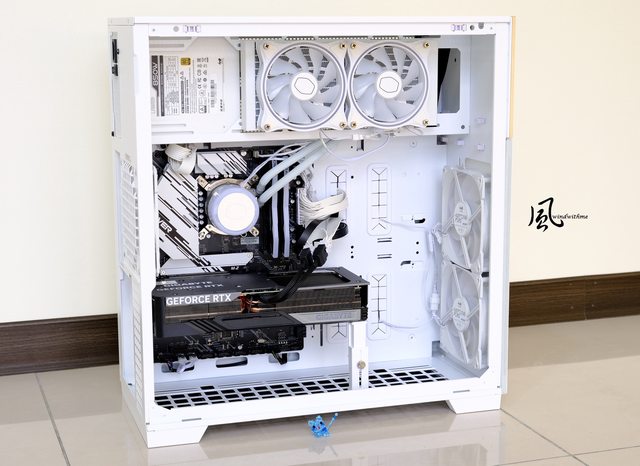 除了搭較大型的零組件來觀看內部空間之外,同時也讓水冷呈現更多白色元素。