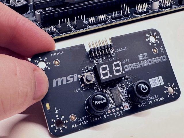 透過線材與主機板連接的EZ DASHBOARD提供開關、重置、清除 CMOS 按鈕和代碼顯示器,
