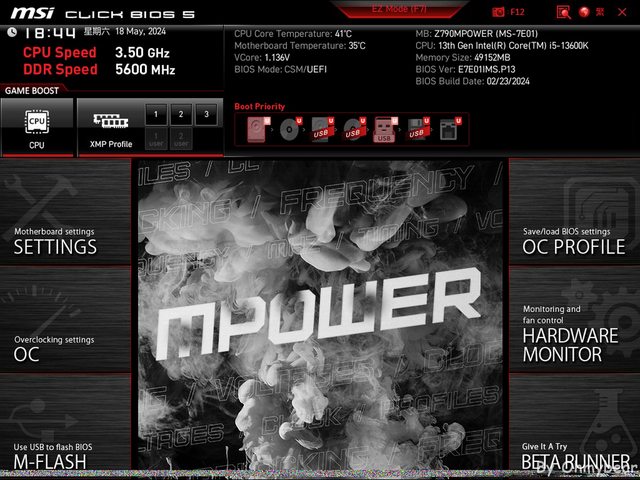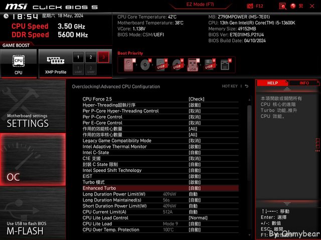 Z790 MPOWER主機板BIOS預設為簡易版介面,簡易版會將主機板上的部分裝置開關如CPU風