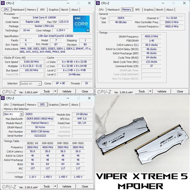 直接套用XMP1的8000Mhz後進入系統,依CPU-Z的資訊VIPER XTREME 5採用Hynix顆粒,基