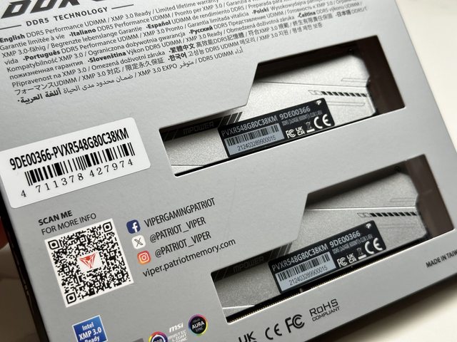 本次搭配的是由美商Patriot旗下VIPER GAMING系列的 XTREME 5 RGB記憶體,為DDR5