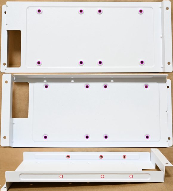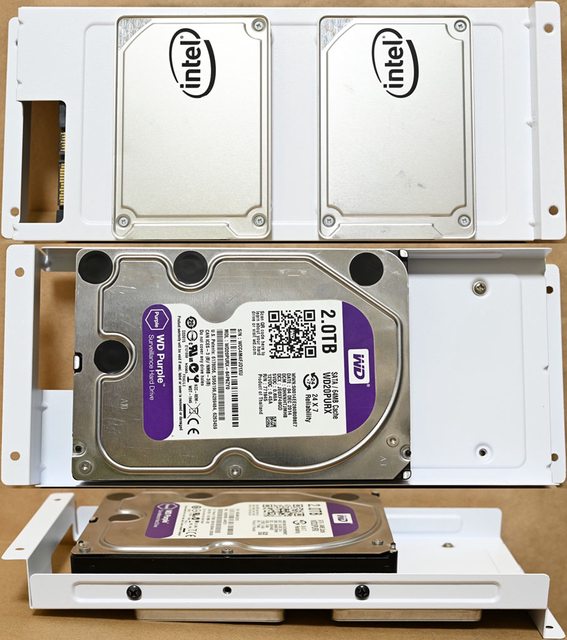▼右艙可拆卸式固定架可安裝2個2.5吋裝置(紫色孔)及1個3.5吋裝置(兩側紅色孔)