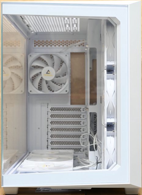 ○底部/右側前方/頂部/後方提供最多10個風扇安裝空間,預裝6個P12R 120mm PWM反向發