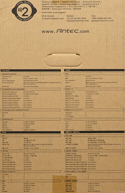 ▼此面外箱有AQ2兩年保固標誌、聯絡資訊、原廠網址、提把開口、多國語言產品規格