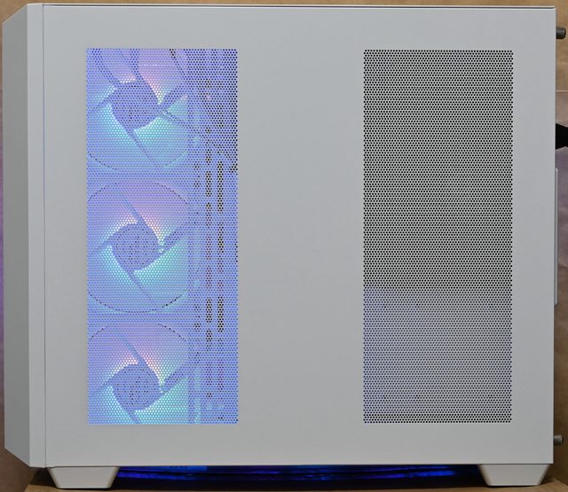 光風扇及1個P12 120mm PWM發光風扇,底部及頂部可裝360mm一體式水冷散熱排,右側前