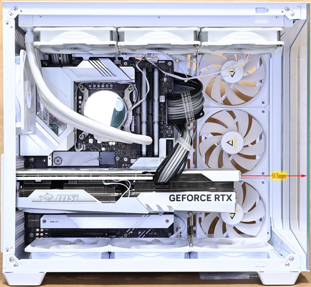 ▼MSI GEFORCE RTX 4070 Ti GAMING X TRIO WHITE(337×140×62mm)顯示卡頂端與機殼