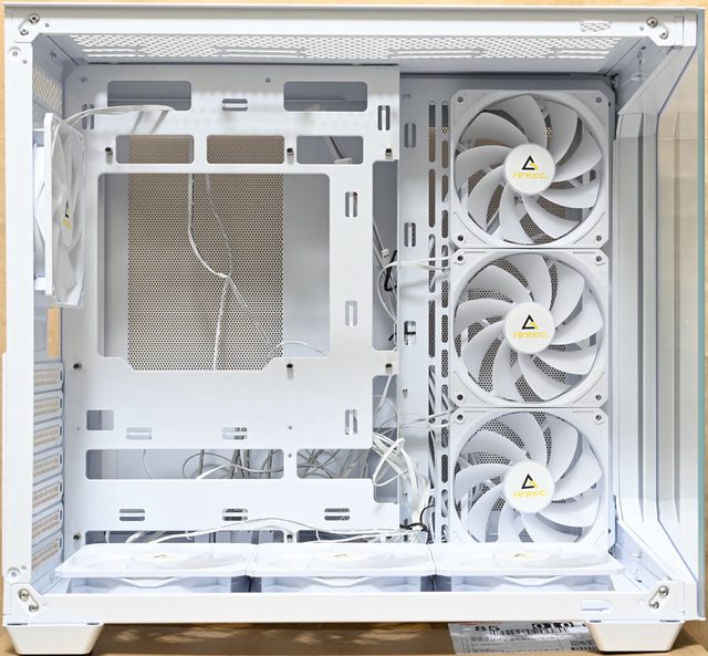 右側前方風扇安裝空間:3個120mm或2個140mm(預裝3個P12R 120mm PWM反向發光風扇)