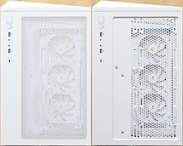 ▼機殼正面配置強化玻璃面板,外框傾斜造型讓玻璃正面右側往前凸出