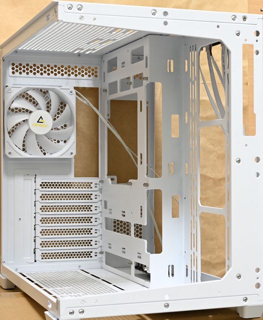 標準擴充槽,均具備可重複拆裝的網狀通風擋板,電源供應器安裝位置在右艙上方,僅提