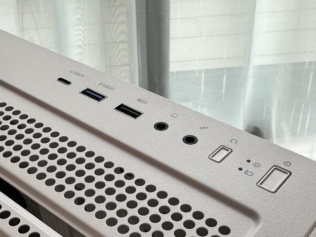 IO位於機殼上方,提供一個10Gbps TYPE-C、1個5Gbps USB3.0、1個480M USB2.0及音效/