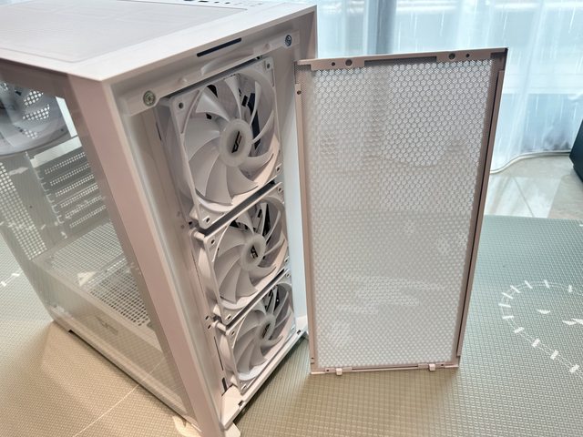 前面板可裝3顆12或14cm風扇,最外層為以磁吸固定的通風面板。