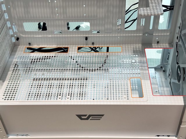 DRX70的優勢之一是內部的走線開孔相當充足,電源倉上方就有3處開孔可供USB、IO及顯