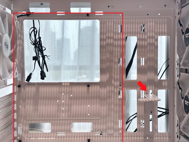 電源倉上方還設有2個12cm風扇安裝位置,前方則留設水冷排空間,運用彈性充足。