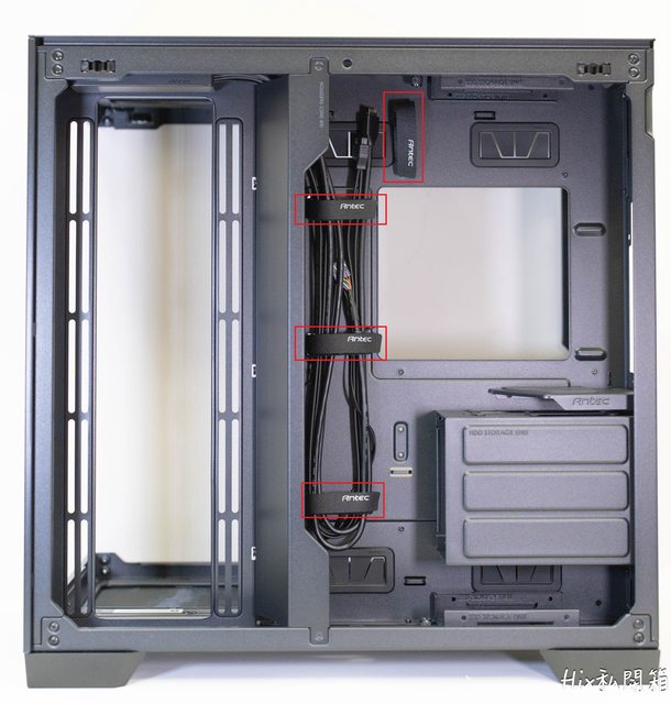 機殼有三個地方可安裝硬碟,分別在電供倉位的上及下有2.5吋雙槽*2