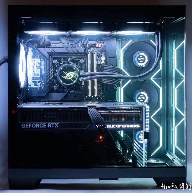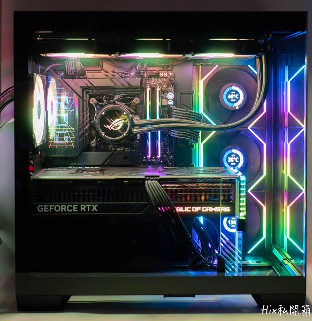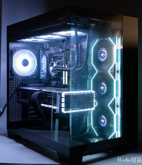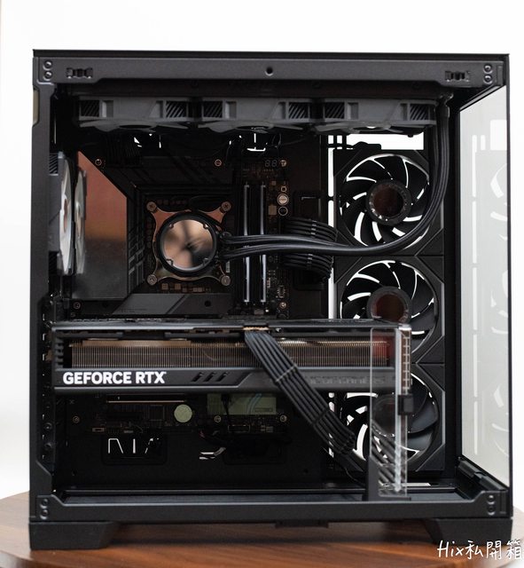 可以看到正面安裝360冷排搭上40系這種磚塊顯卡