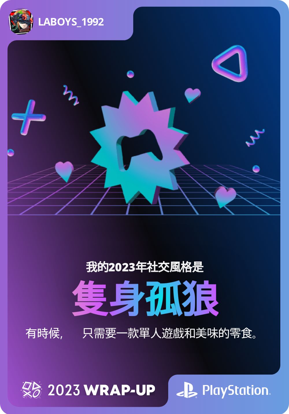 → viceten: 今年玩了685個小時的孤狼型玩家 12/15 13:23