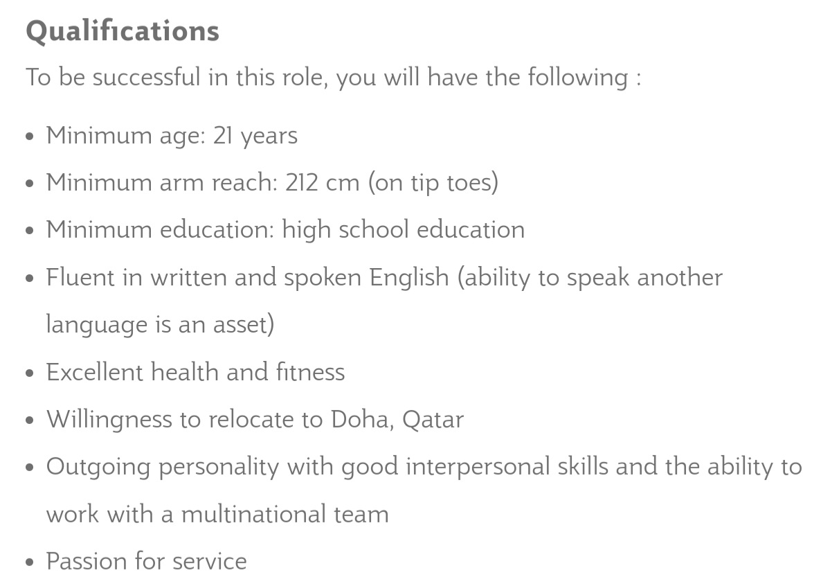 推 ten0227: 卡達哪裡限女,我看徵才條件只有寫這樣 04/16 10:42