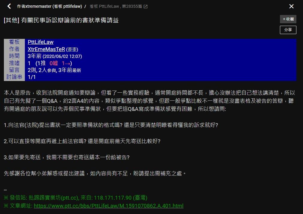 → Soulimana: 哇靠 你又失憶了喔? " 我打過訴訟會不知道實務?" 05/12 16:53