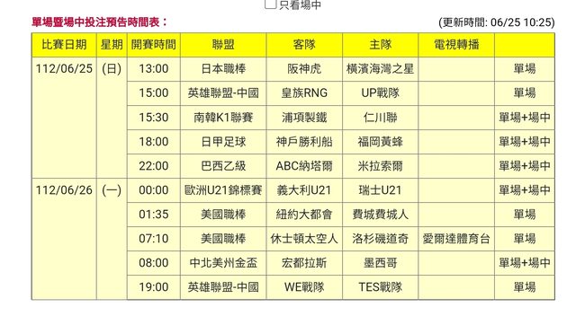 標題[情報] 112-06-25 26單場場中