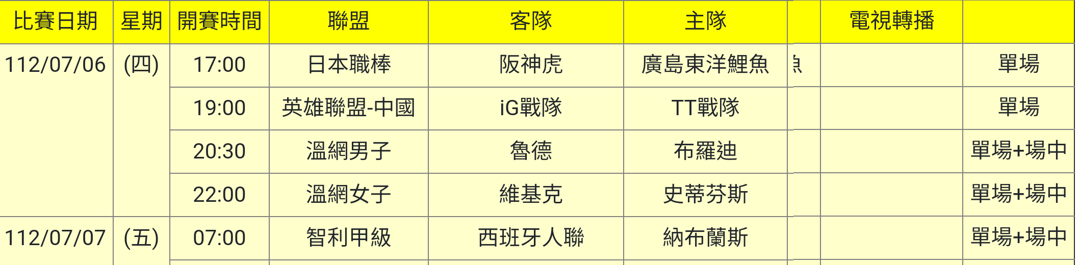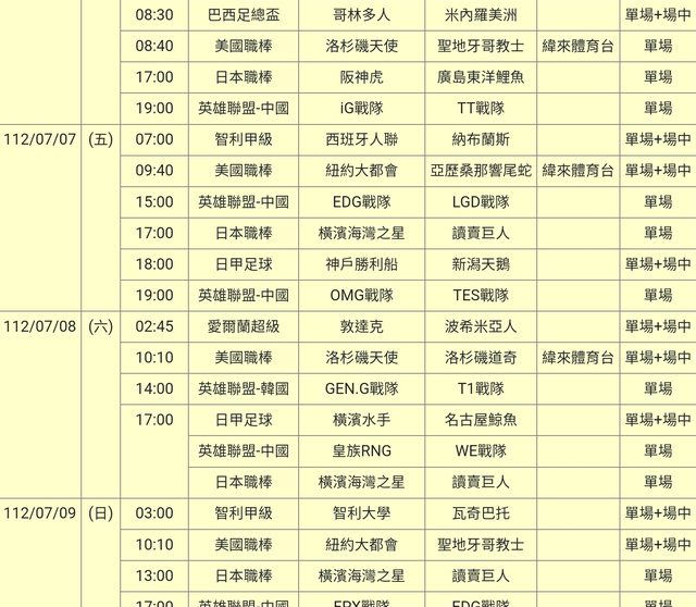 標題[情報] 112-07-06單場場中