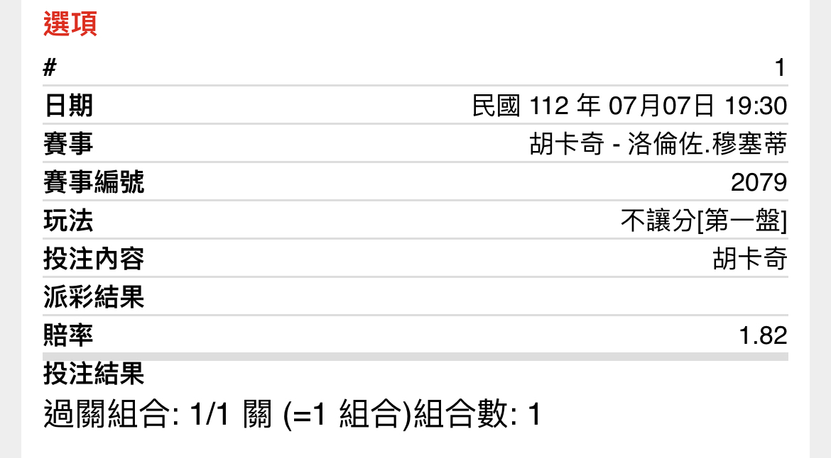 噓 Taiwan007: 第一盤胡卡奇1.58,6000223.138.87.127 07/07 19:56