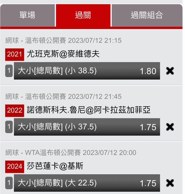 就推個比較有譜的劇本吧、女網打3盤、男網總 分1大3小