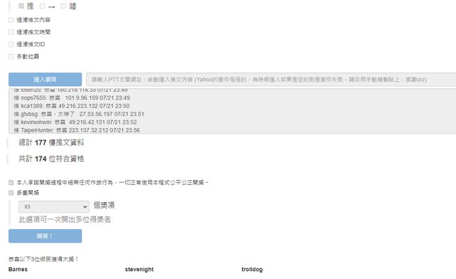 以下是幸運的三位